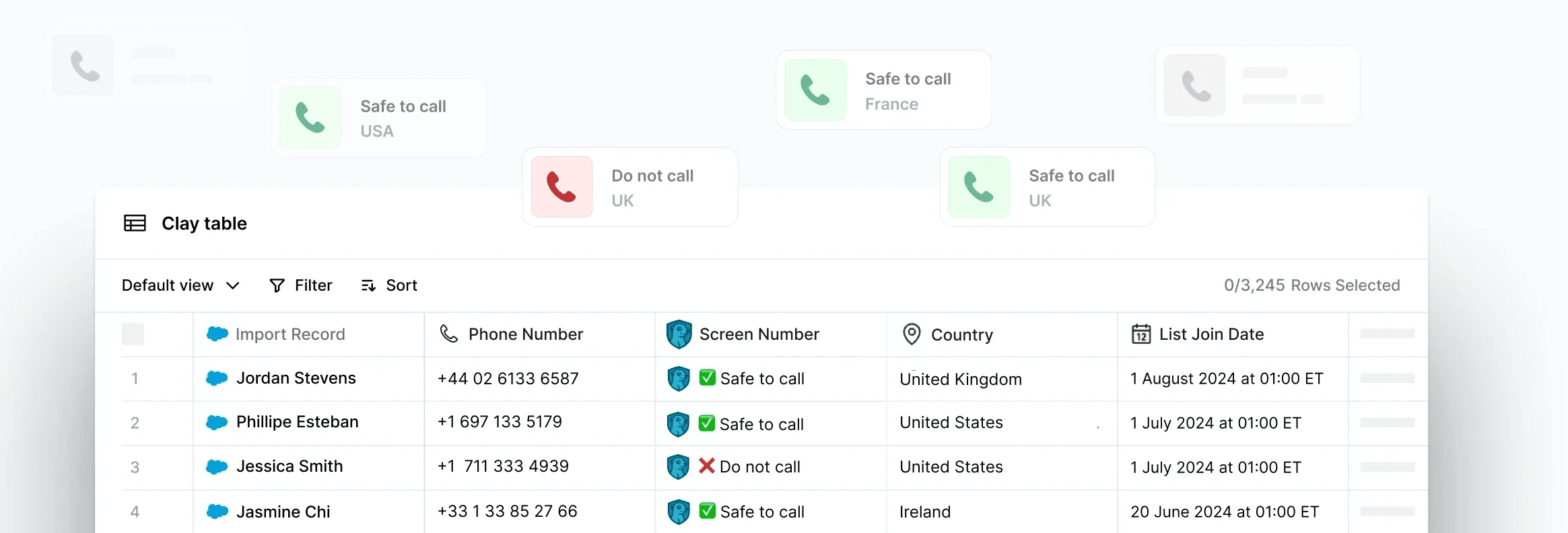 Screen waterfalls for risky phone number and monitor your CRM for data sourced outside of Clay.
